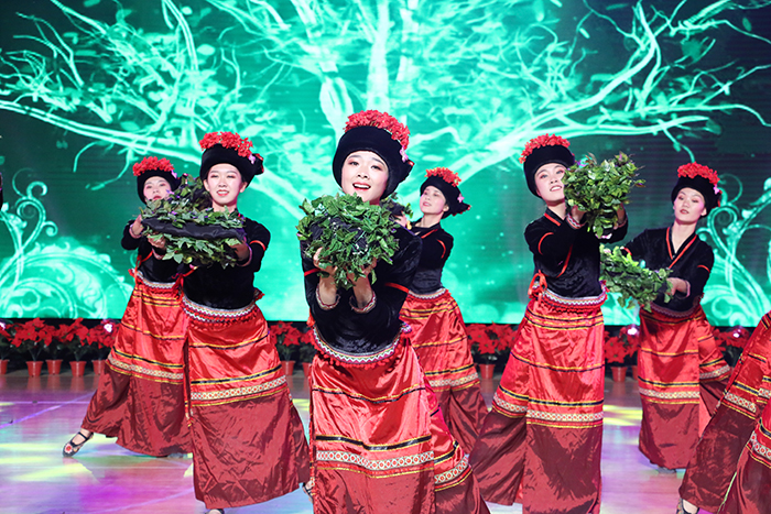 随后,晚会文艺演出正式开始。由昆明学院师生共同创作、表演的布朗族女子群舞《布朗茶韵》,手风琴二重奏《山楂树》、《Shukriya Pakistan》,歌曲《云南美》以及瑜伽、太极拳、动感拉丁表演等精彩节目,热烈欢快,充满民族风情、校园活力和青春气息,令观众如痴如醉。最后,以《欢欢喜喜跳起来》,邀请现场领导、上合组织成员国国家协调员、驻华使节代表和上合国家青年代表等一同起舞。舞后,与会领导及来宾一同参观上合国家青年云南文化体验作品展示。
